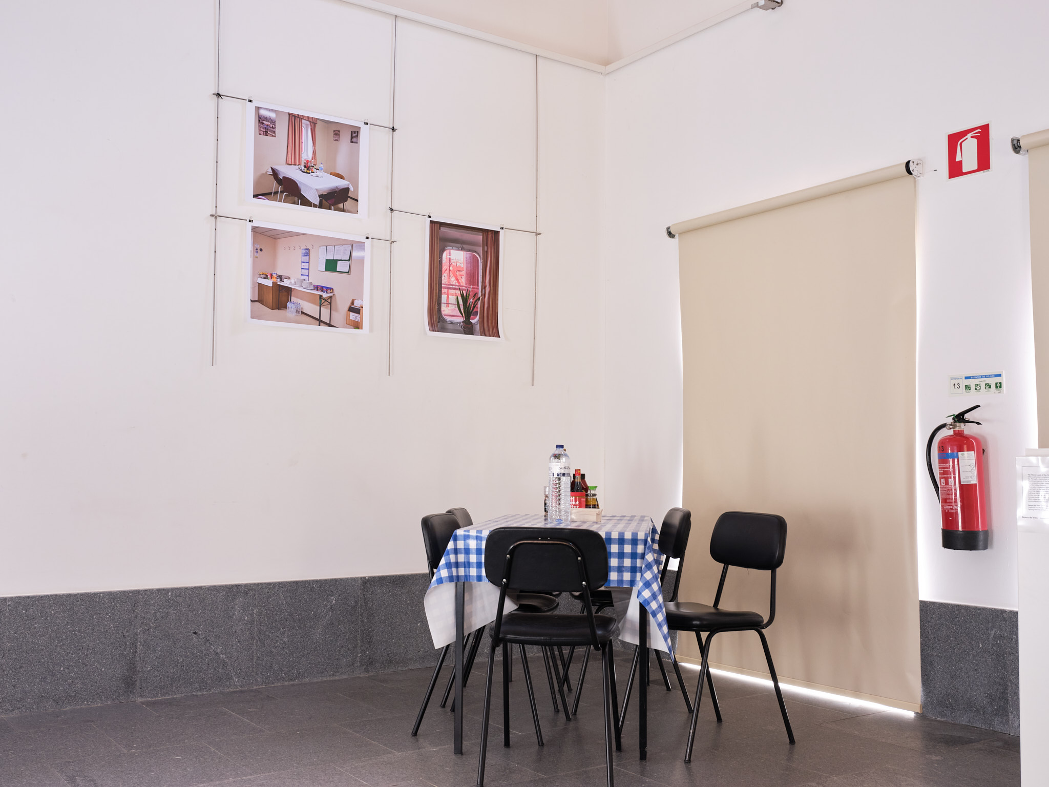 The participating photographers were Ilias Bardaa, Isa de Jong, Yara Jimmink, Michelle Piergoelam, and Remco de Vries. The exhibition took place in Palácio do Raio, an eighteenth-century baroque palace distinguished by its blue azulejo-tiled facade. I presented new work from The Heavy Loads of Our World: three photographs of mess rooms aboard container ships, accompanied by an installation recreating a mess room table with the condiments found on virtually every ship I visited. A copy of the book accompanied the installation.
