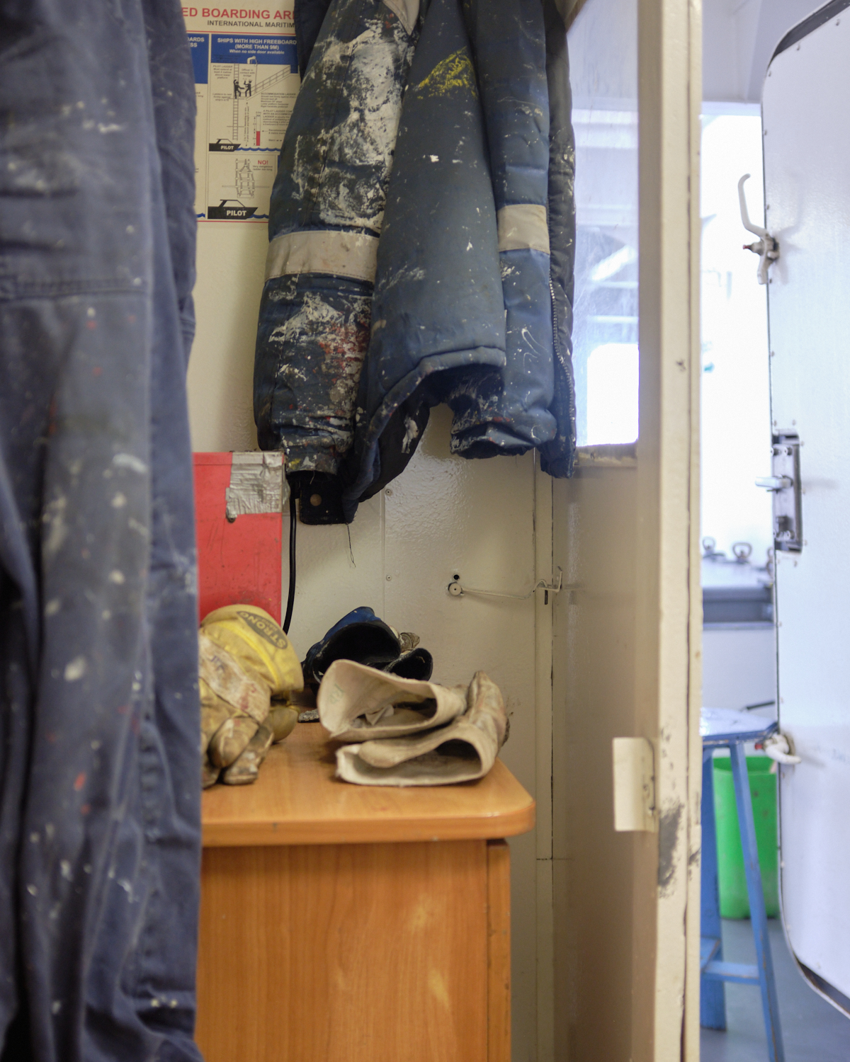 To build trust and gain deeper access, I volunteer as a driver at the International Seafarers' Center The Bridge in Oostvoorne. The center offers free transport for seafarers to get ashore, providing WiFi to contact home and access to the nearby village. Through these brief but recurring encounters, I gain insight into their daily lives. The work also grants me access to ships, where I can photograph their working and living spaces.